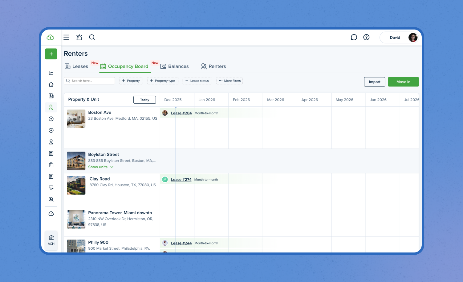The addition of the Occupancy Board offered an at-a-glance view of overall lease activity. Renewals, move-outs, and unit availability are now easier to track, helping prevent gaps between tenants and reducing manual planning.
