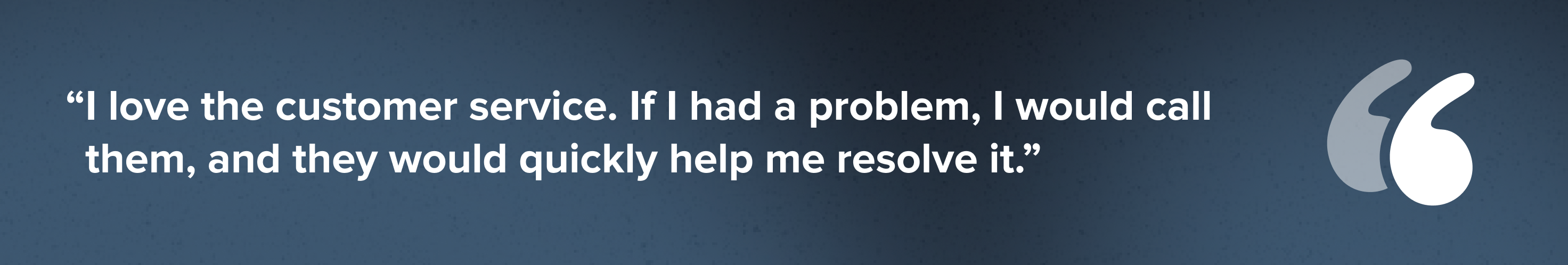 “I love the customer service. If I had a problem, I would call them, and they would quickly help me resolve it.”