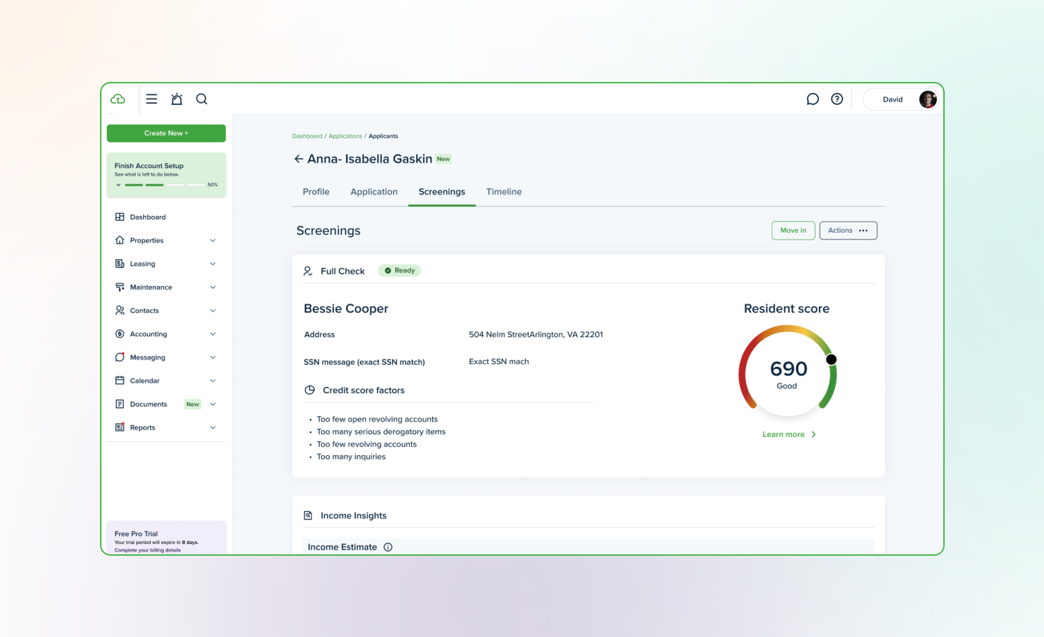 The TenantCloud software interface is simple enough for part-time landlords while offering all the features larger operations use. The free tier from Avail also works well for small landlords prioritizing basic features over advanced automation. Both platforms let you collect rent online, screen tenants, and manage maintenance requests without overwhelming complexity.