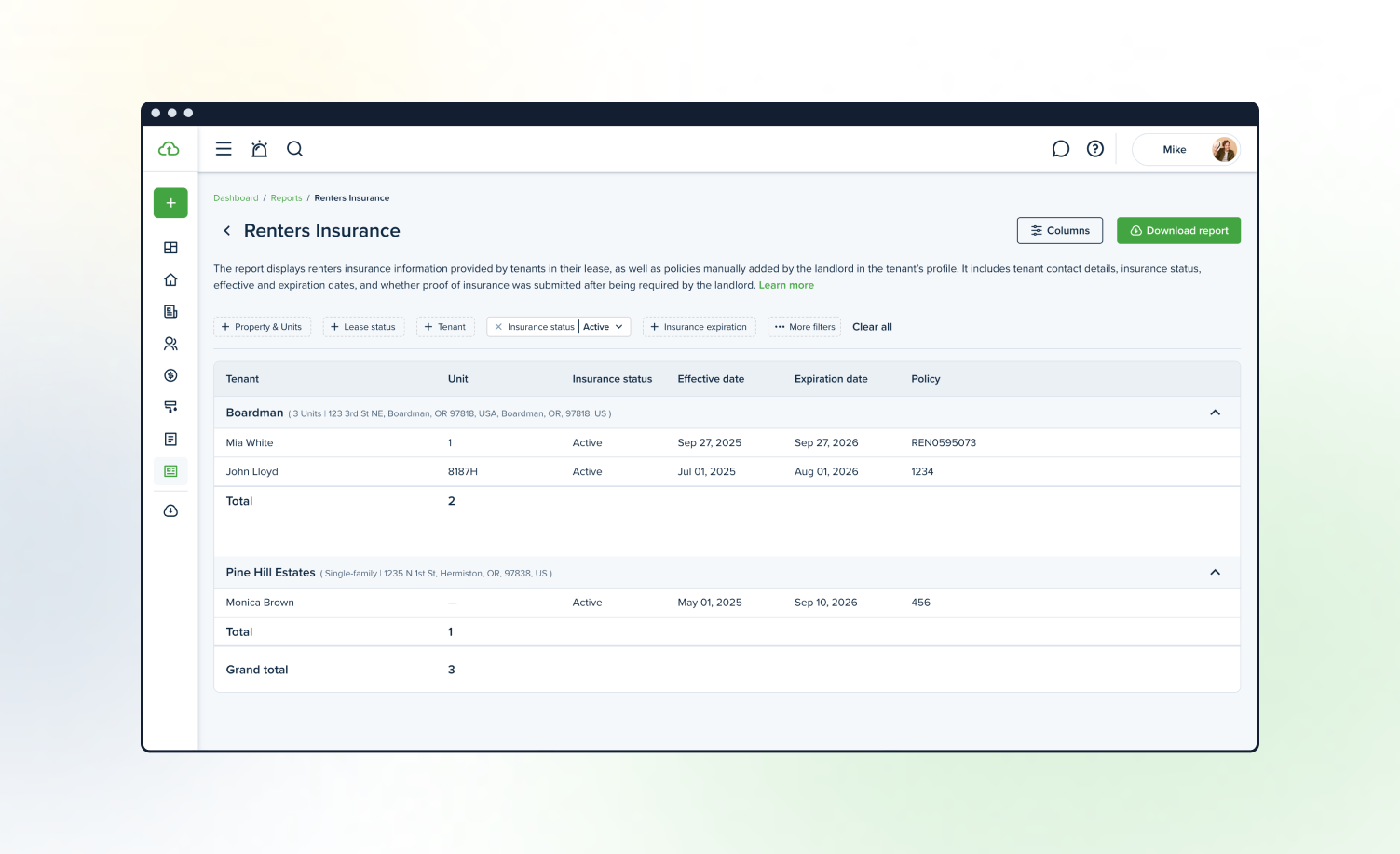 Protecting your rentals just got easier. The new Renters Insurance Report gives landlords and property managers a clear view of which tenants are covered - and which aren’t.