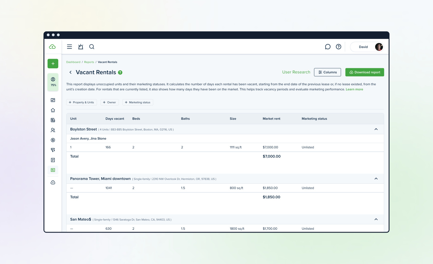 This highly requested report makes it easier to track vacancy periods, monitor performance, and take timely action to reduce downtime.