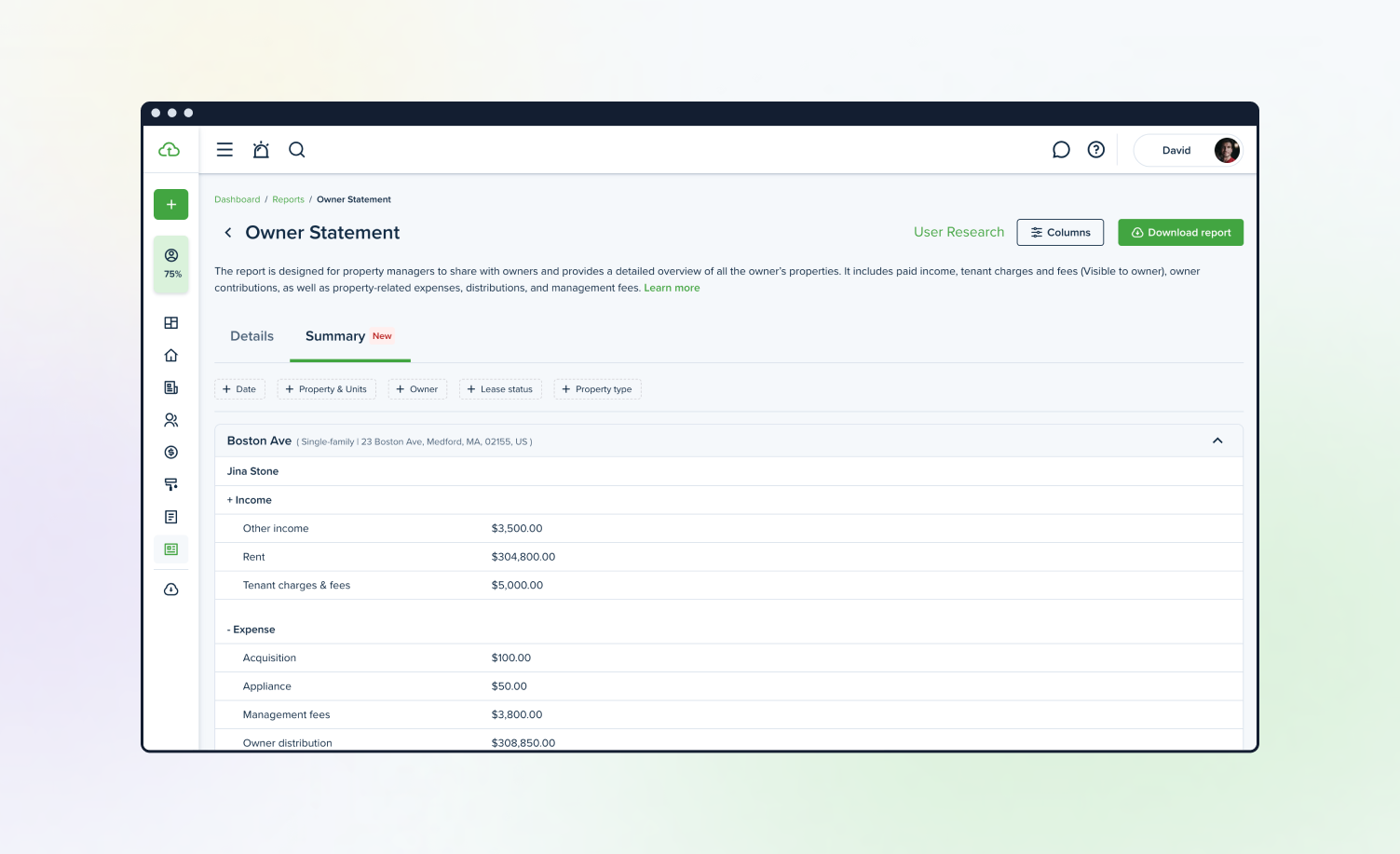 Users asked for a simpler way to review owner statements without digging through every transaction. We’ve added a new “Summary” tab that shows a clear, high-level view of income, expenses, balances, reserves, and unpaid bills.
